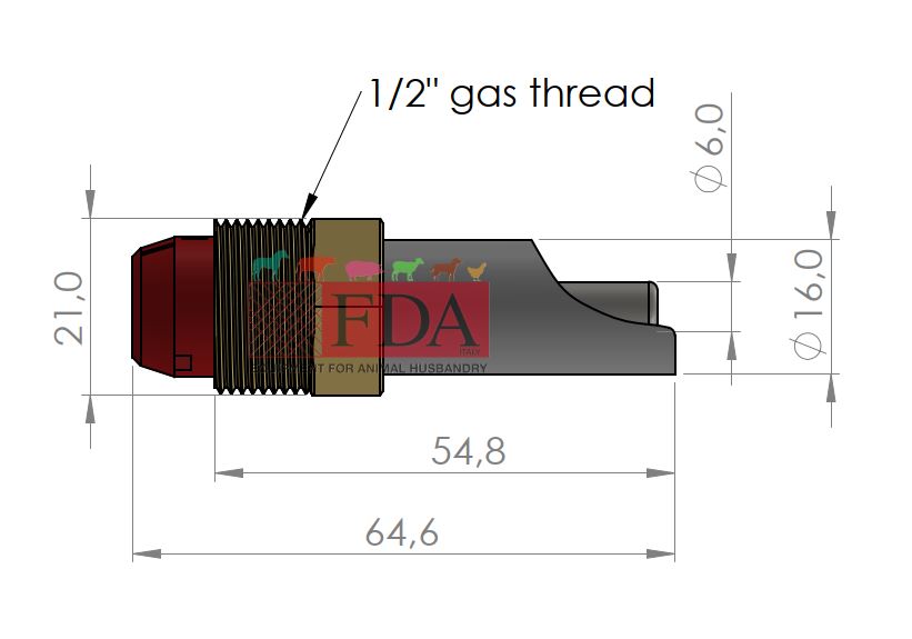 Abbeveratoio automatico a succhiotto 1/2″ per suinetti con valvola regolabile – Modello FDA-000022TP