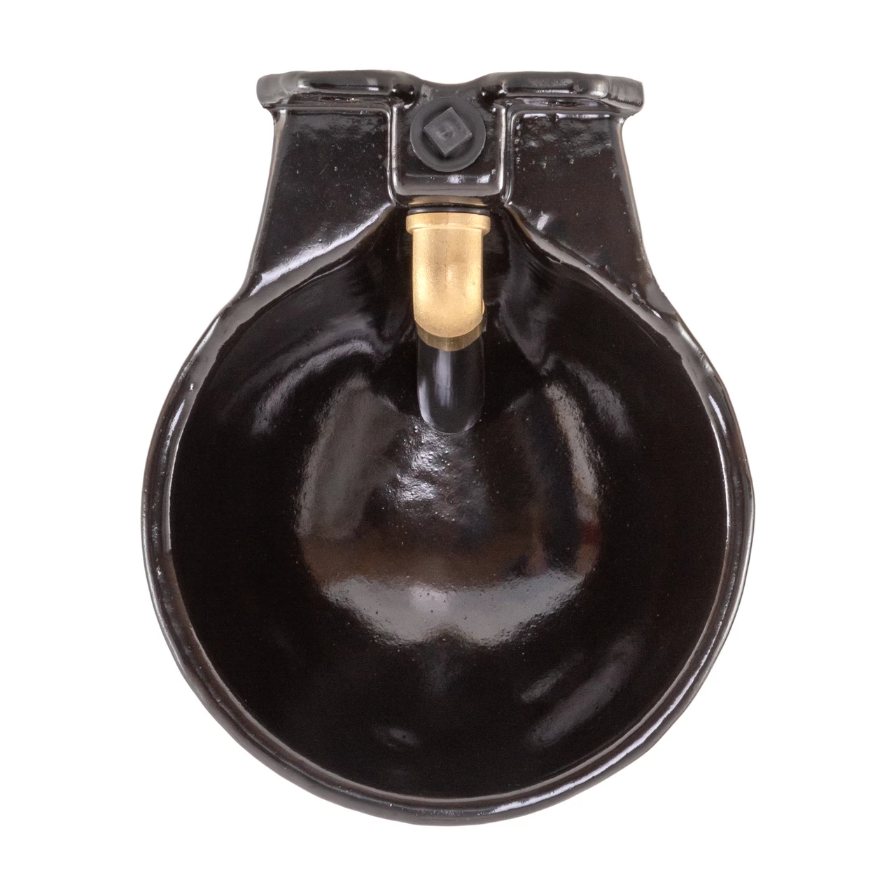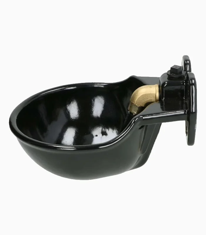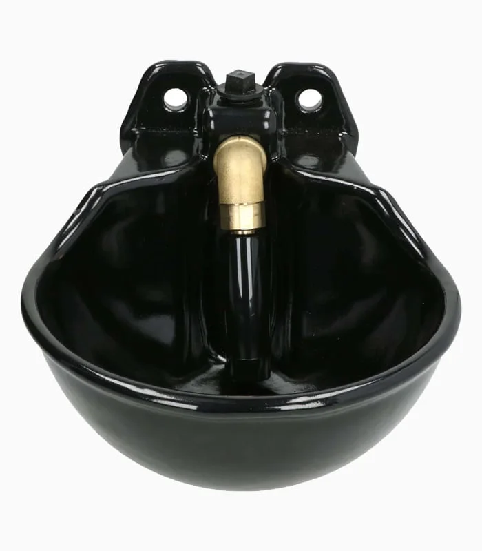 Abbeveratoio in ghisa smaltata FABB0033 con valvola tubolare in ottone, adatto per cavalli, bovini, capre e pecore. Capacità 1,7 L, attacco acqua 1/2″ e portata fino a 8 L/min. Robusto, igienico e ideale per installazione in stalla o al pascolo.