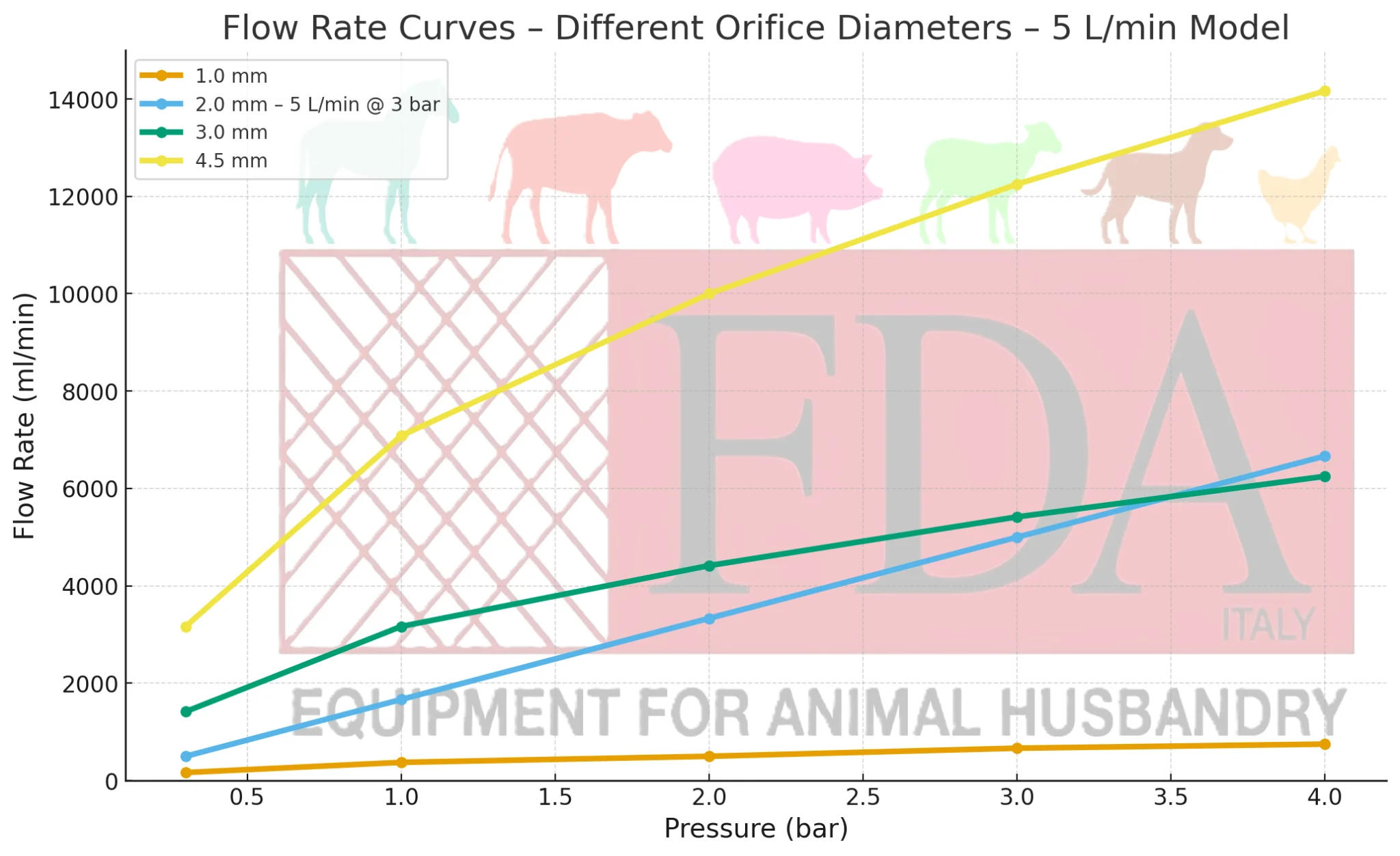 1,0 e 2,0 L/min, in funzione delle esigenze dell’allevamento.