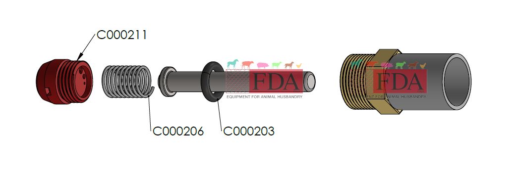 Art. FDA-000024TP - Abbeveratoio automatico a succhiotto 1/2" per mangiatoie suini (mangia/bevi)