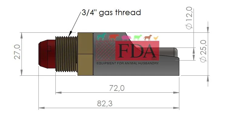 Art. FDA-004P12TP – Abbeveratoio a succhiotto 3/4” grande per scrofe e ingrasso