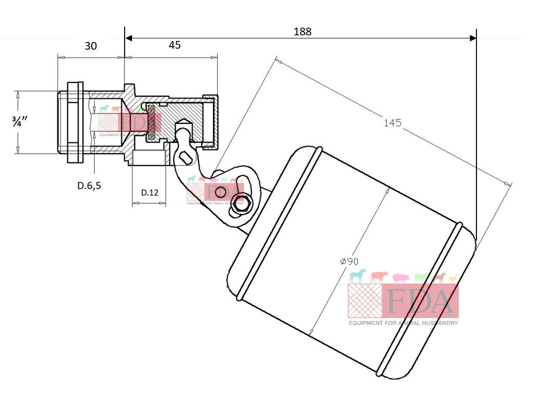 Galleggiante per abbeveratoio FAR19B con valvola in ottone e attacco 3/4″ maschio.