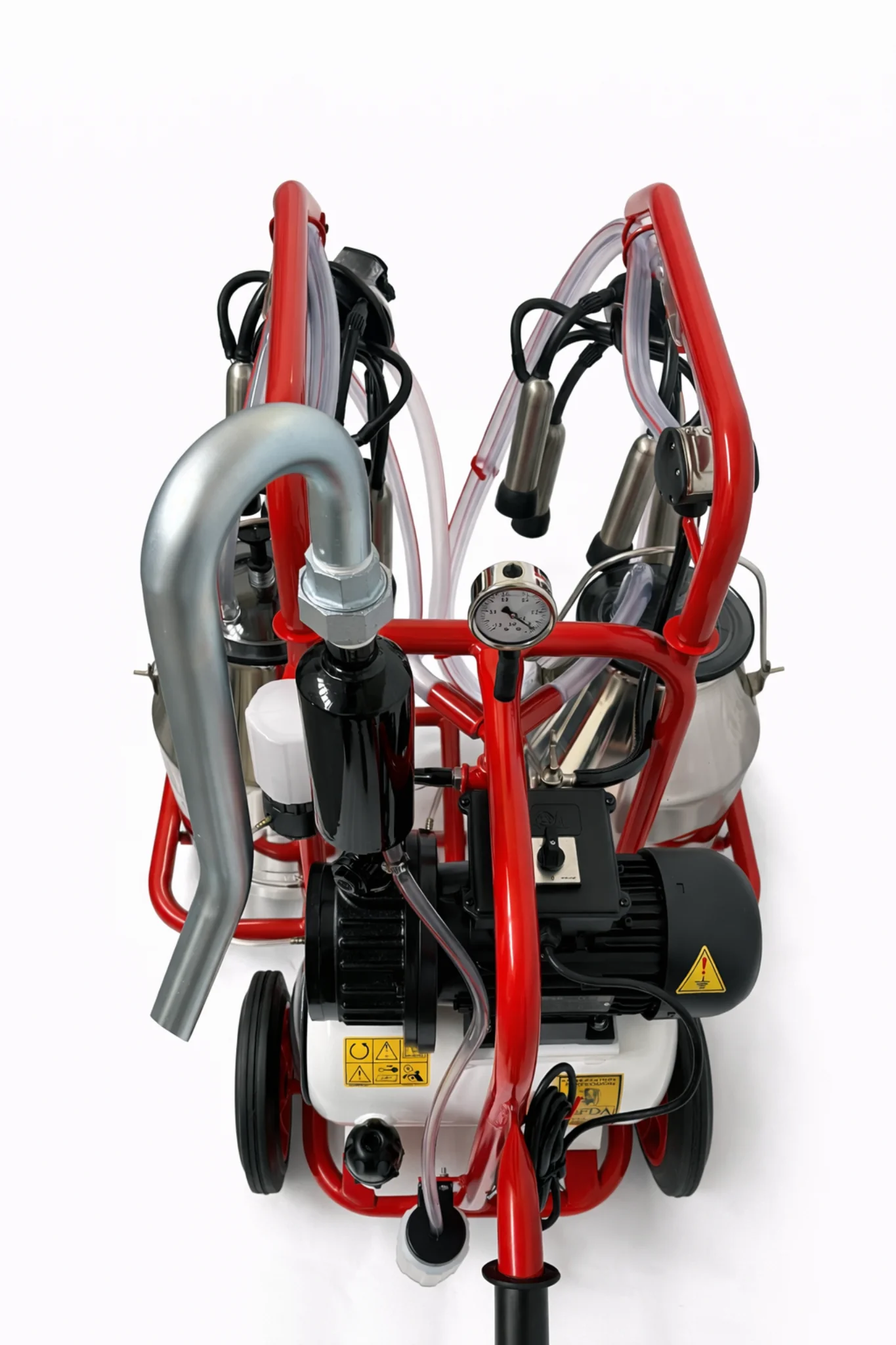 Mungitrice carrellata FA1625 a due gruppi per bovini da latte con pompa del vuoto a bagno d’olio da 280 o 400 L/min. Dotata di due gruppi mungitori completi, due secchi latte inox da 30 L e struttura mobile su carrello. Sistema affidabile e certificato CE, ideale per mungere due vacche contemporaneamente in stalla.