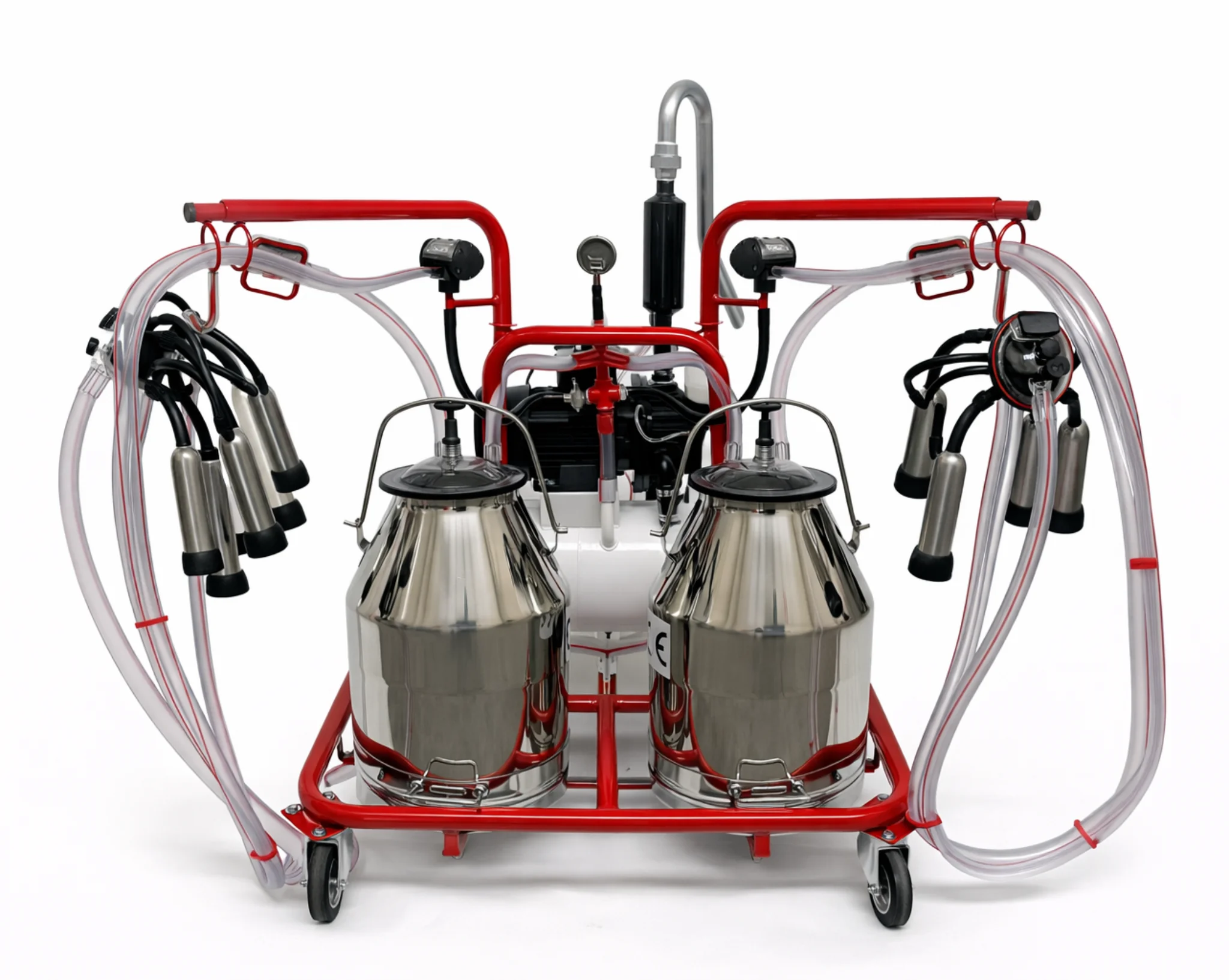 La mungitrice è dotata di 2 gruppi mungitori completi, composti da: